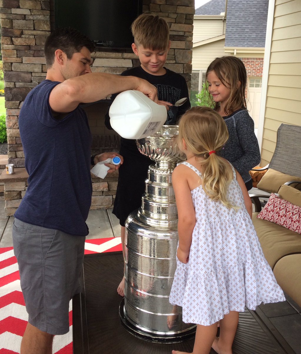 Hän ei nimittäin kaatanut Stanley Cupiin mitään alkoholipitoista, vaan muroja ja maitoa. Tämän jälkeen hän iski lastensa käteen lusikat, jotta he saisivat nauttia unohtumattomimmasta muro-hetkestään.