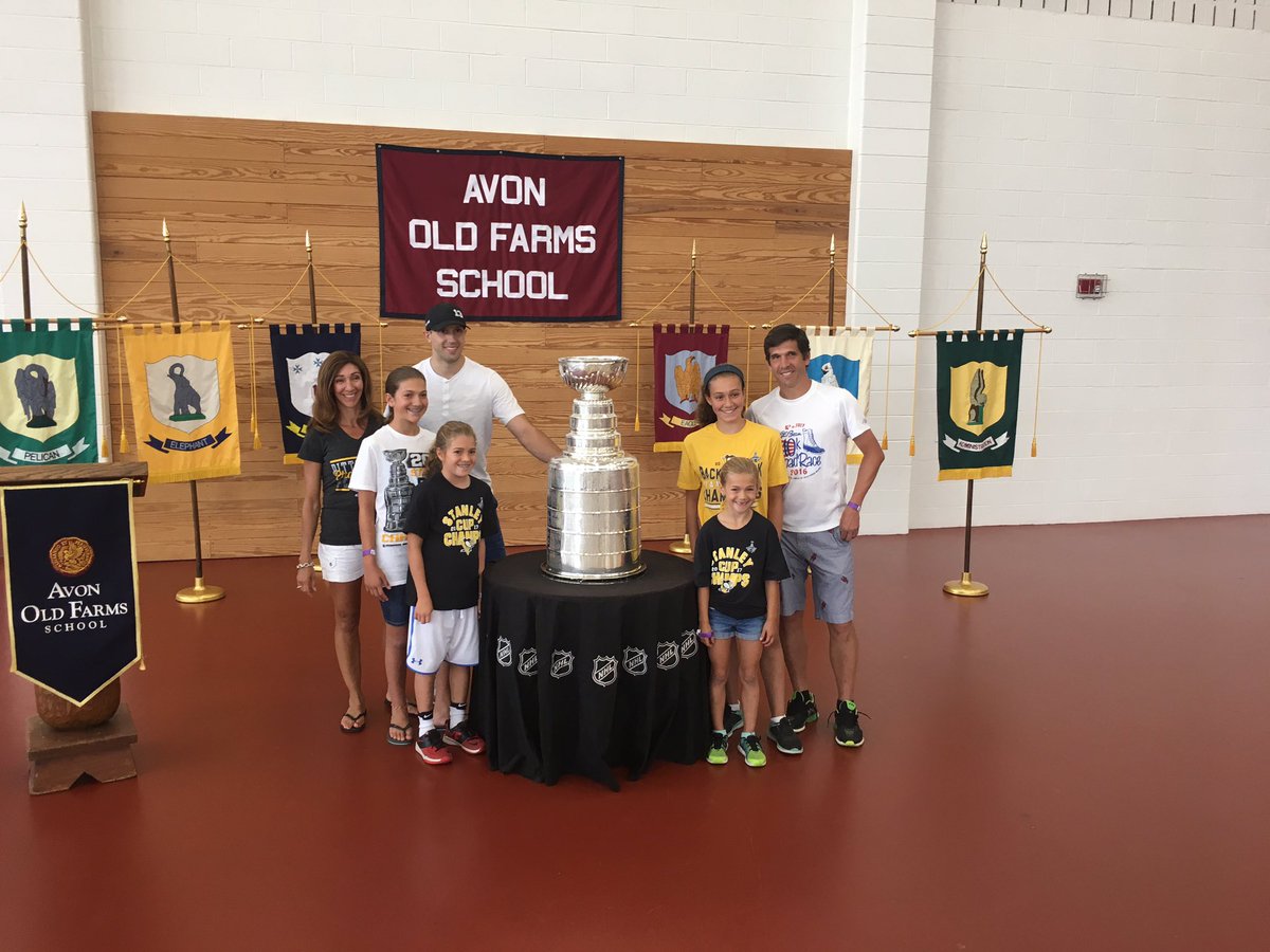 Yet again @NickBonino '07 makes @avonoldfarms proud by sharing the #StanleyCup with the public and raising money for #CCMC. #WingedBeavers