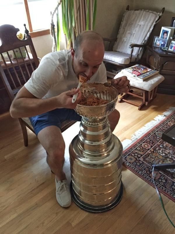 Maailman paras pastakulho! – Nick Bonino piti kiinni italialaisjuuristaan Stanley Cup -pytyn kanssa (KUVA)