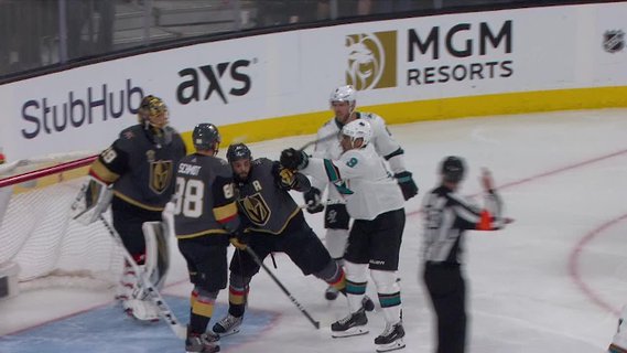 Kohauttavista tempuistaan tunnettu Kane antoi kovan poikittaisen mailan Vegas Golden Knightsin hyökkääjän Pierre-Edouard Bellemaren naamaan. Sharks-tähti sai ulosajon tilanteesta.