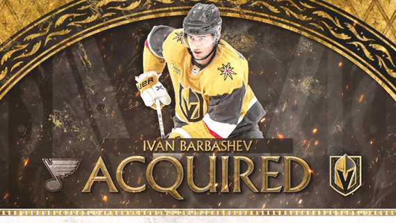 St. Louis Bluesin hyökkääjä Ivan Barbashev siirtyy Golden Knightsiin vaihtokaupassa. Bluesiin matkaa vastikkeena Golden Knightsin kesän 2021 ykköskierroksen (30.) varaus Zach Dean.