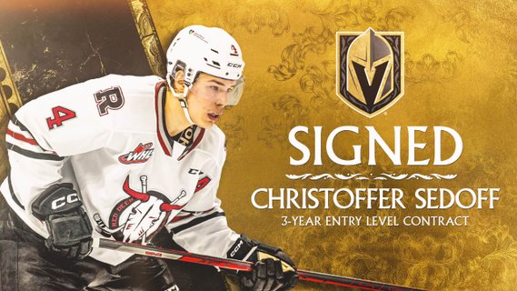 Vegas Golden Knights on solminut kolmevuotisen tulokassopimuksen suomalaispuolustaja Christoffer Sedoffin kanssa.