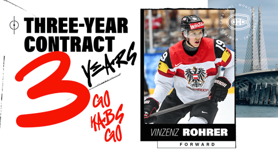 Montreal Canadiens on tehnyt kolmen vuoden mittaisen tulokassopimuksen itävaltalaishyökkääjä Vinzenz Rohrerin kanssa.
