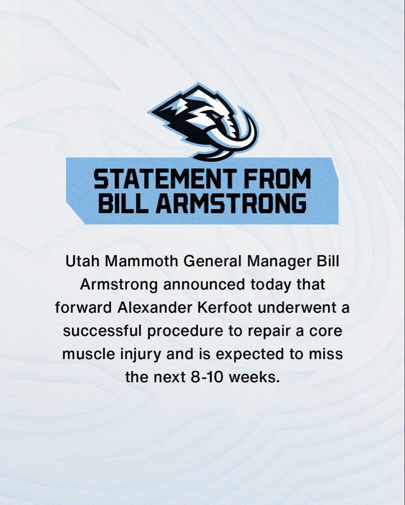 Utah Mammoth tiedottaa, että hyökkääjä Alexander Kerfoot joutuu olemaan pitkään sivussa peleistä.