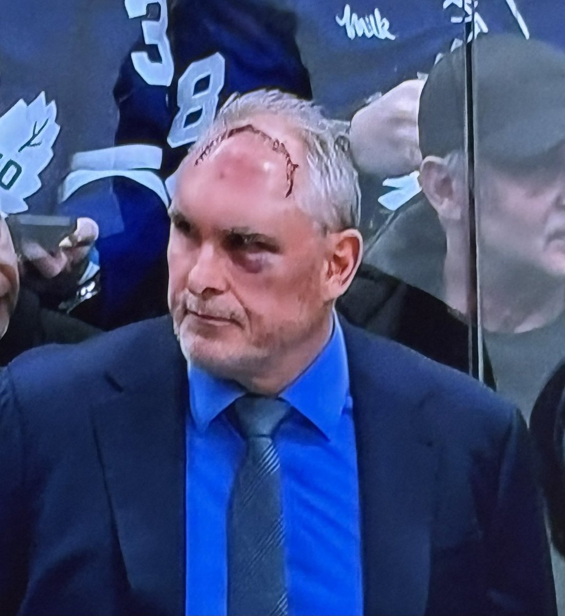 Berube päätti olla penkin takana Vegas-ottelussa ilman päähinettä, joten karmeat jäljet näkyivät kaikille katsojille.