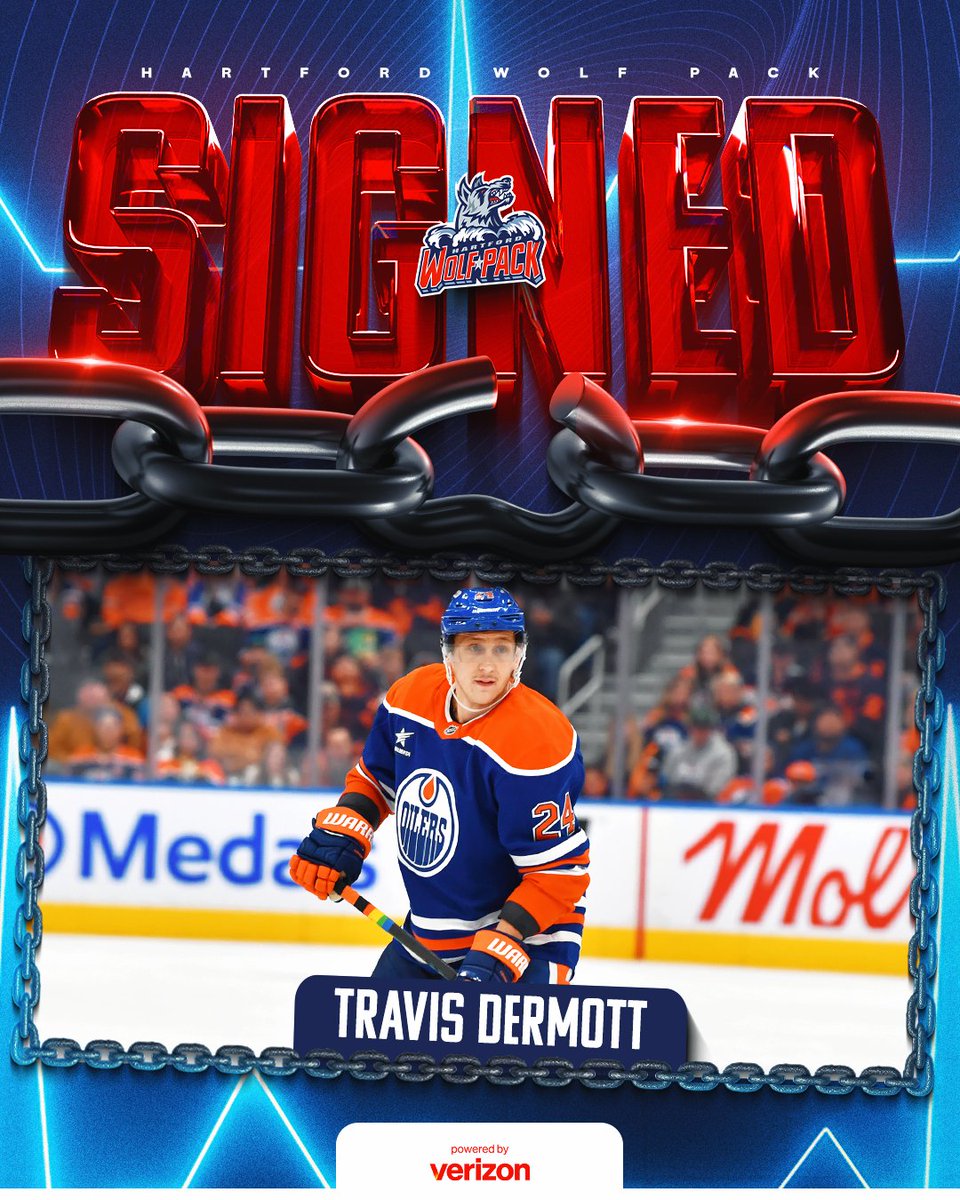 AHL-seura Hartford Wolf Pack tiedottaa tehneensä try out -sopimuksen Dermottin kanssa. Kyseessä on New York Rangersin farmiseura.